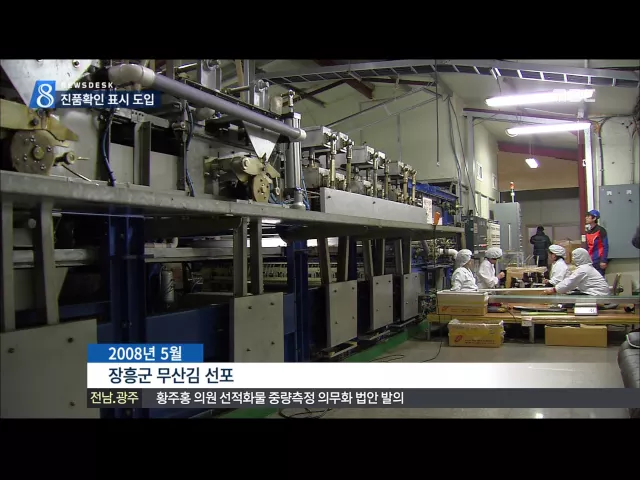 ◀ANC▶ 전국 김 생산량의 80% 가까이 차지하는 전라남도에서 김 생산이 한창입니다. 이제는 친환경 김이 소비자들의 호응을 얻으면서 스마트 폰으로 진품을 확인할 수 있게 유통과정이 발전하고 있습니다. 최진수 기자가 보도합니다. ◀END▶ ◀VCR▶ 지난 달까지 전남도내 물김 생산량은 9만 천 톤으로 1년 전과 비슷...